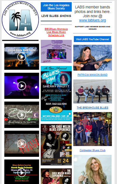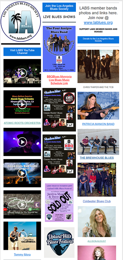 The Mission of The Los Angeles Blues Society is a dedication to preserving and perpetuating an array of Blues music forms in Los Angeles, and the greater area of Southern California. (Click HERE to read more)